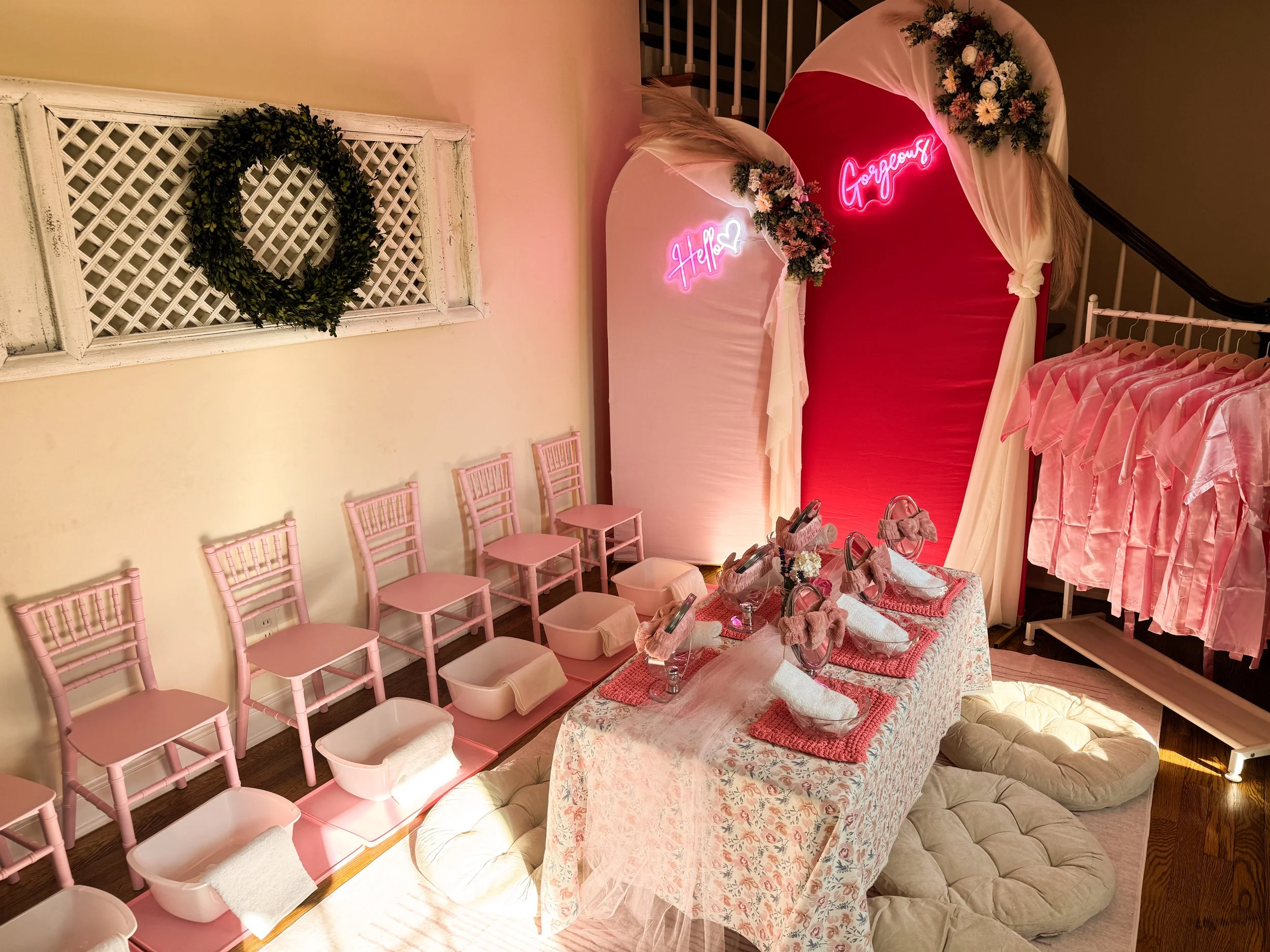 Indulge your guests with a spa-inspired setup featuring cozy décor and relaxing touches. Perfect for birthdays, sleepovers, or girls’ nights, it adds elegance and unforgettable fun.